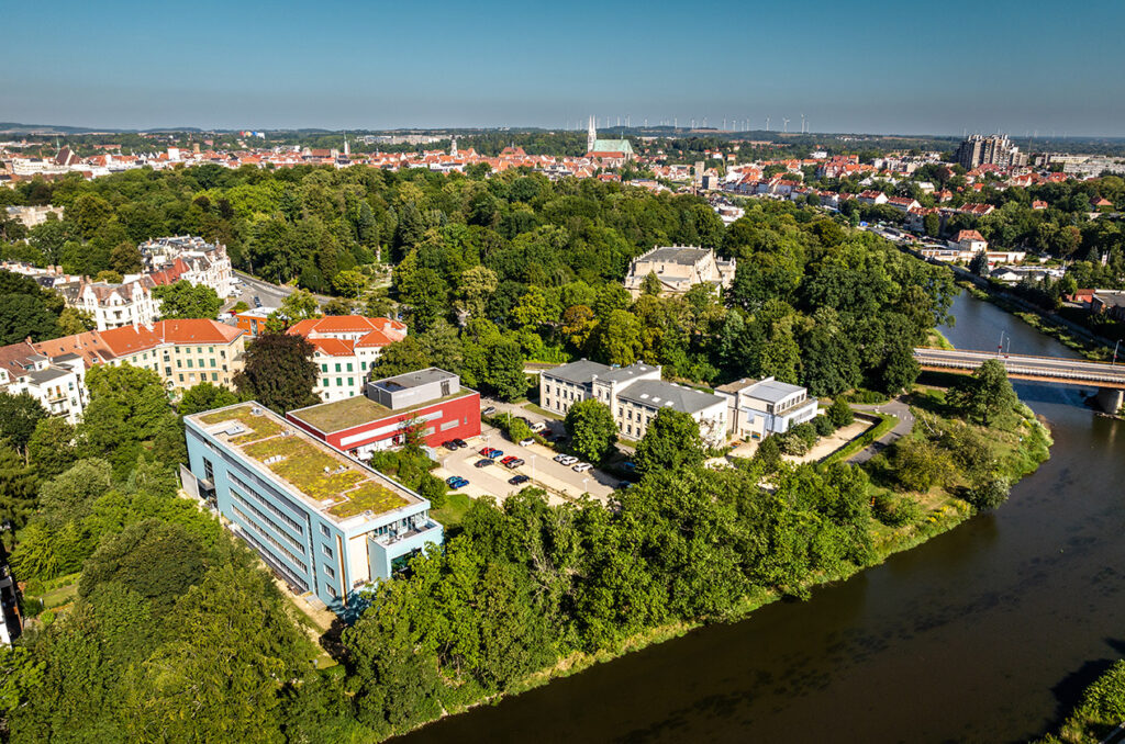 Der Campus direkt an der Neiße schafft Begegnungen zwischen Studierenden, Lehrenden und Mitarbeitenden – sei es beim Mittagessen, bei kulturellen Veranstaltungen oder am Flussufer.